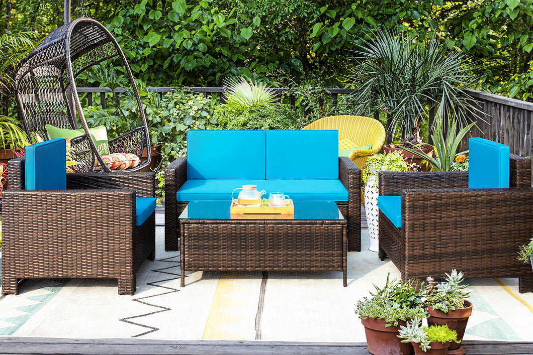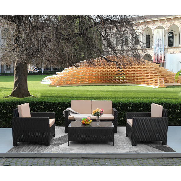 Walnew 4-Piece Wicker Outdoor Patio Conversation Set with Cushions(SP1)
